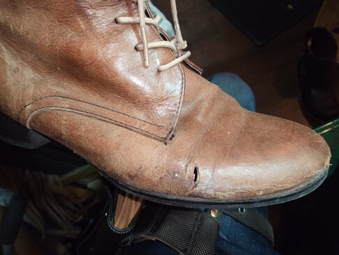 前が返らんと、歩く時にかかとが残って擦れる原因になるんですよ。