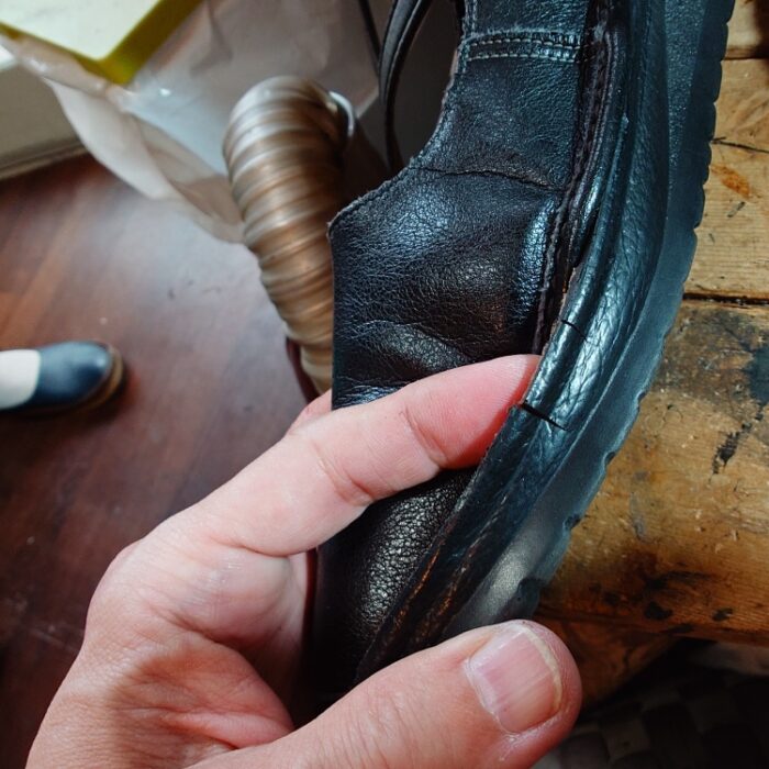 今日、グッドイヤーウェルト製法の靴を一旦マッケイ製法のアッパーの形に魔改造して足合わせの日でした。