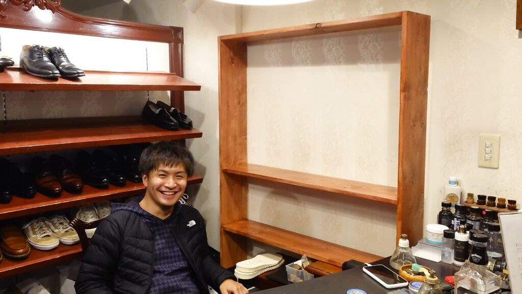 んで、ルキ店長が「革靴をはいた猫」のカウンターの横にも棚を作って欲しいと。