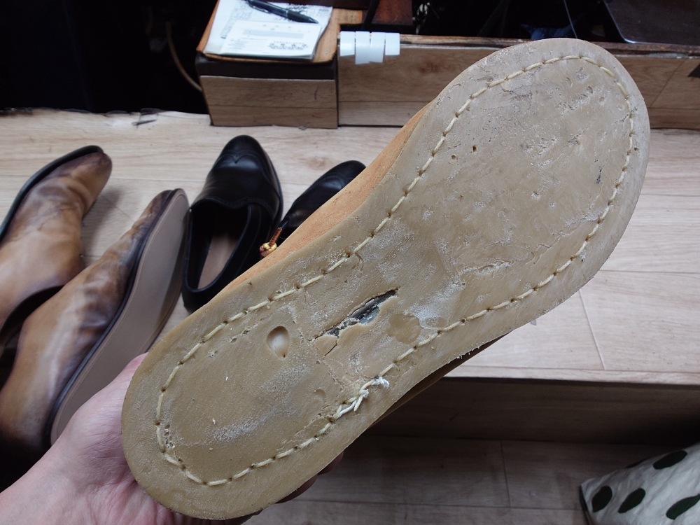 長年経つと、最も下の本底が伸びて外れて来るんよね〜😅