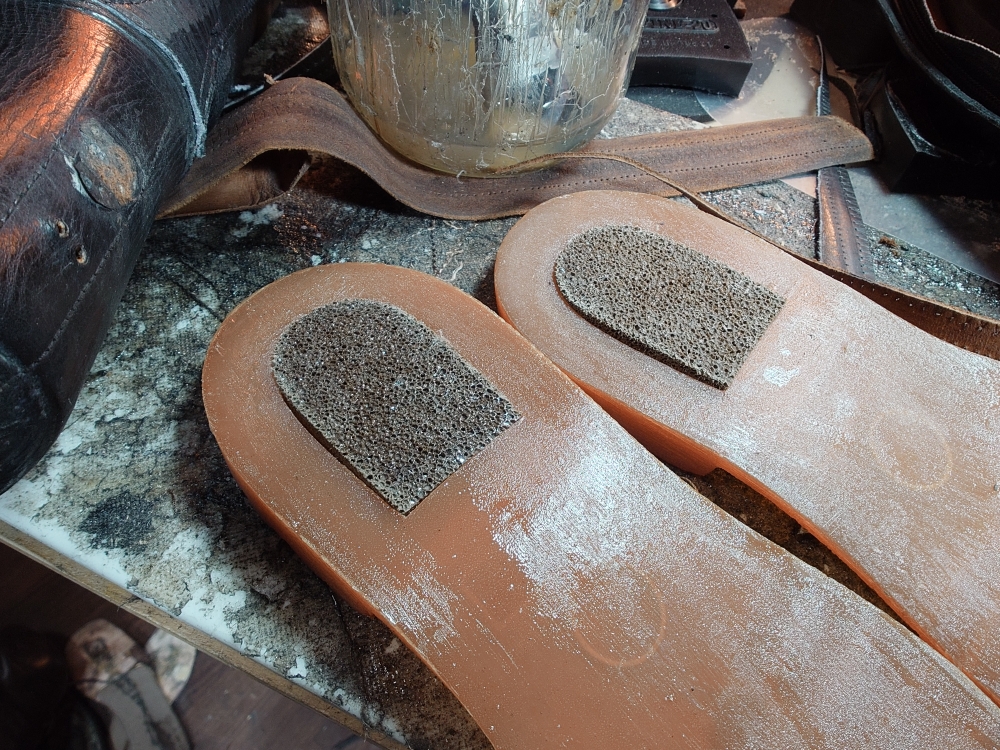 近年、グラフト系ボンドが出てくる前は、ここに本底との接着相性抜群な床革やらショルダー革の薄いの貼ったりして縫い付けるのが主流でしたけど、今や塩ビも怖くないN300とN7000+の組み合わせにより、オプション。