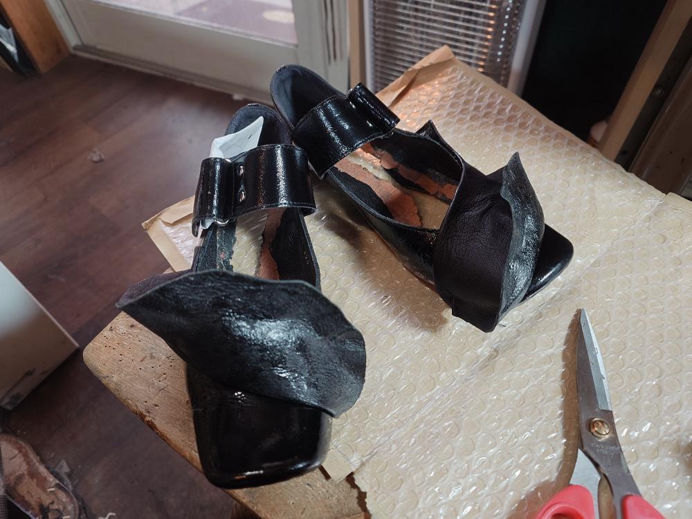 今日、「足に合わせて作り替え」を数足やってはる常連さまと話し込んでて、その方は材料問屋の昴オリジナルのTKヒールが使い込んで行くうちにブヨっと横が出てくるからキライなんですよ〜って言うてはった。