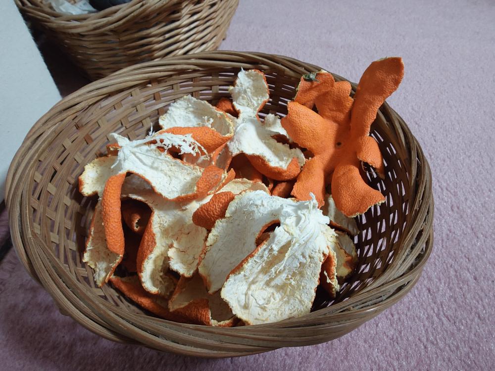 今日、実家に行ってふと部屋の片隅を見たら、陳皮作ってあった🤣