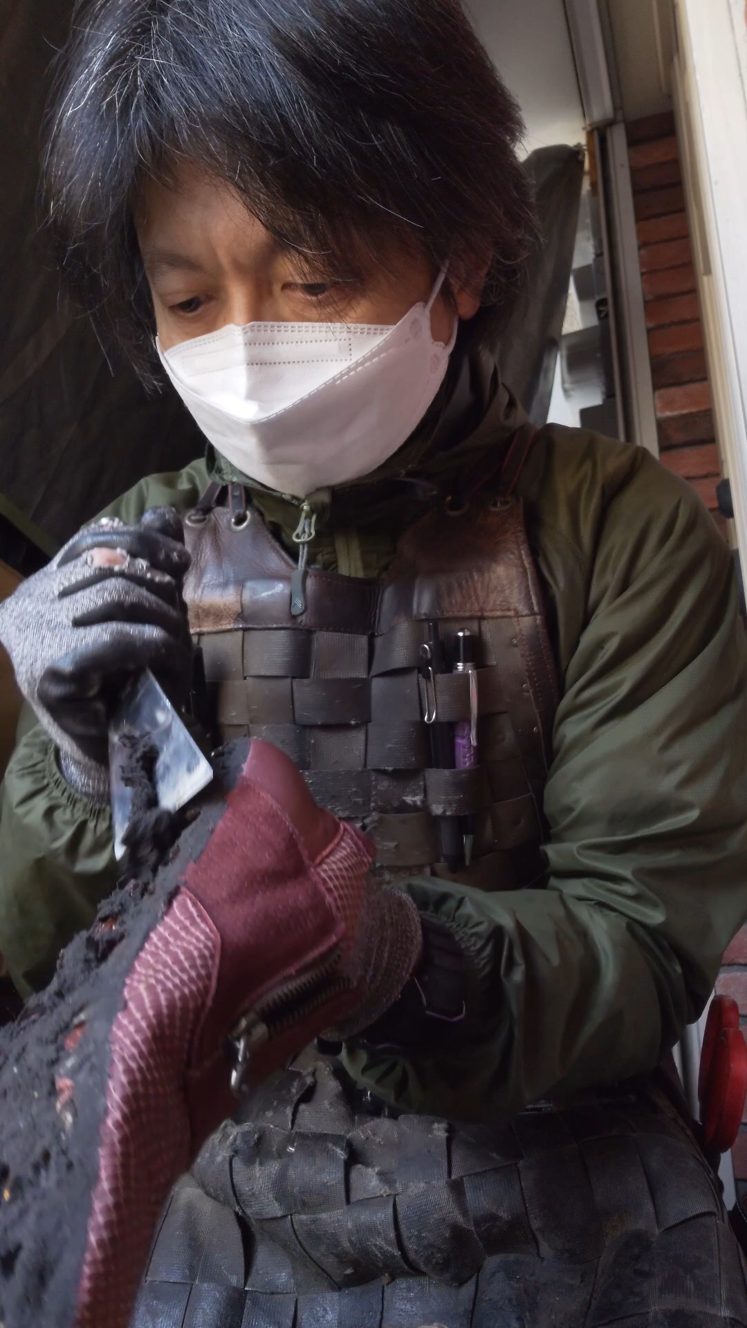 そして、このグチャグチャのウレタンを「周りを汚さないよう」そしてアッパーに付かんように剥がし取るのが一番大変😅
