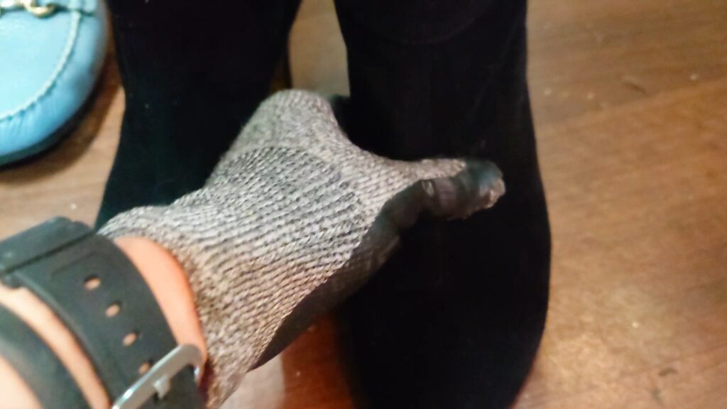 ヒールの先が崩壊して、しばらく歩いてしもたら先っちょはこんな感じになります。