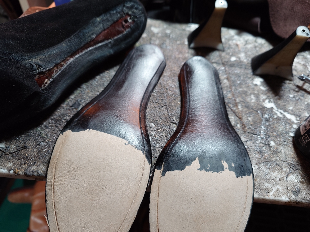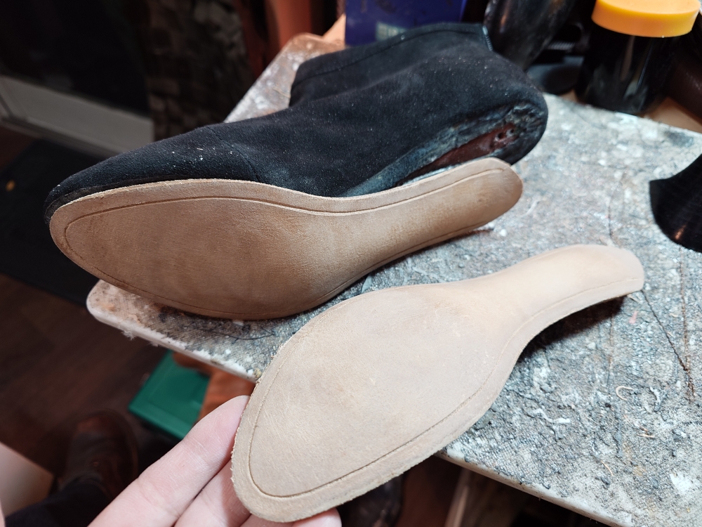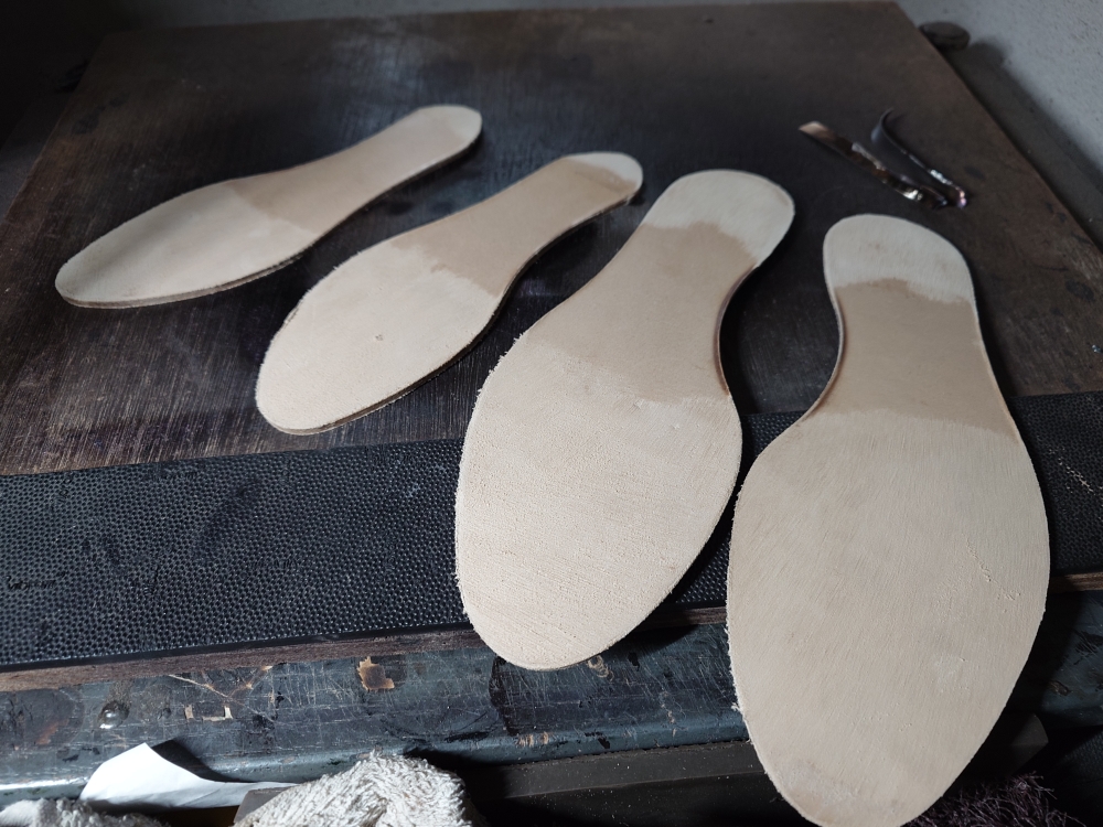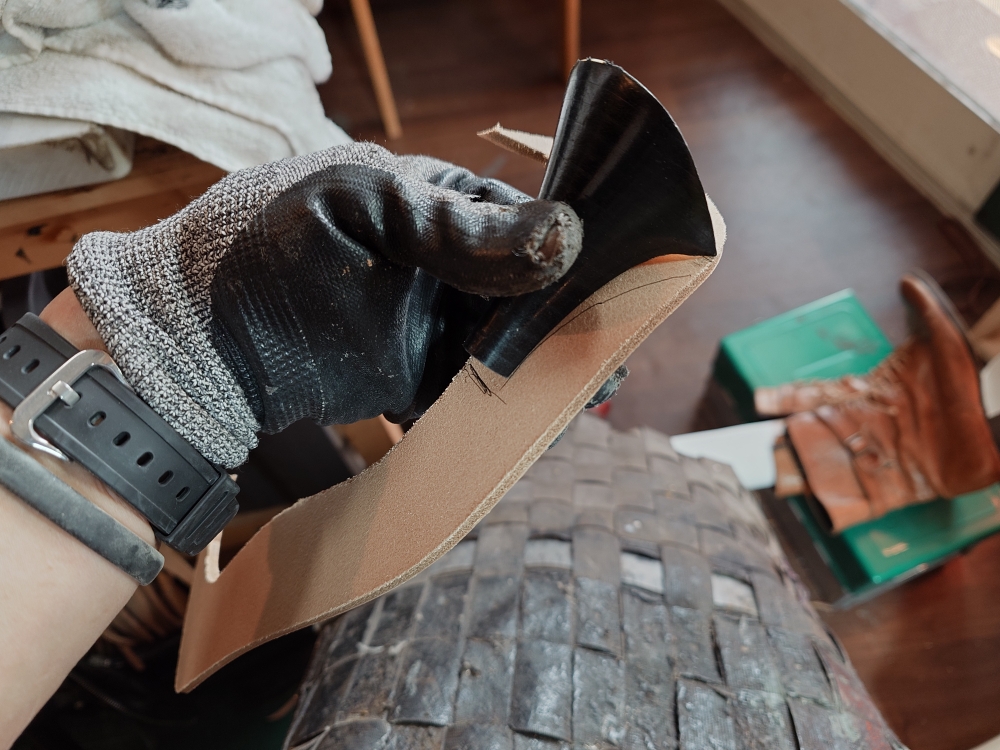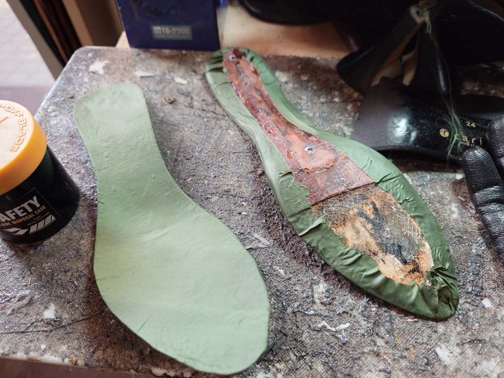 今回のヒールの方は特注の薄手のベンズ革です♪