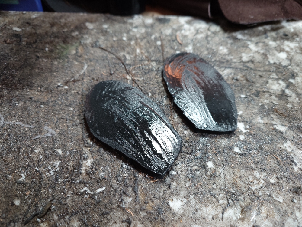 黒く塗ると樹脂の成分が革に浸透して尖って硬化します。