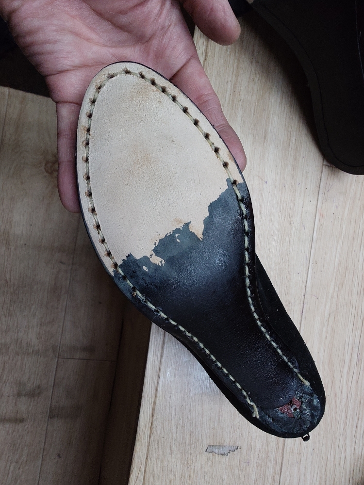 ヒールをビス止めして、2重式の中底を戻したとこです♪