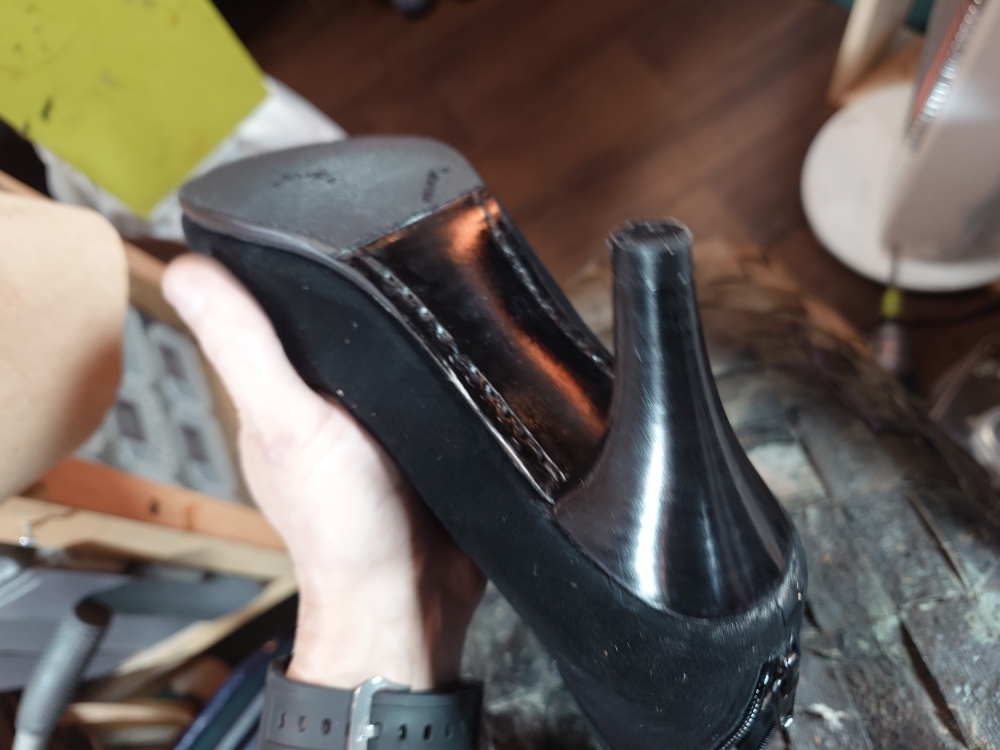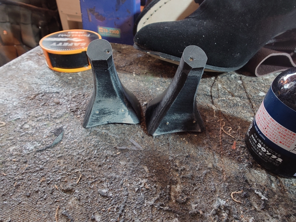 婦人靴のヒールのアゴとか薄くてペラッペラで、ちょっと引っ掛けてしもたら情けないズタズタな感じになるんで、強いの作ったろと言う試み(笑)