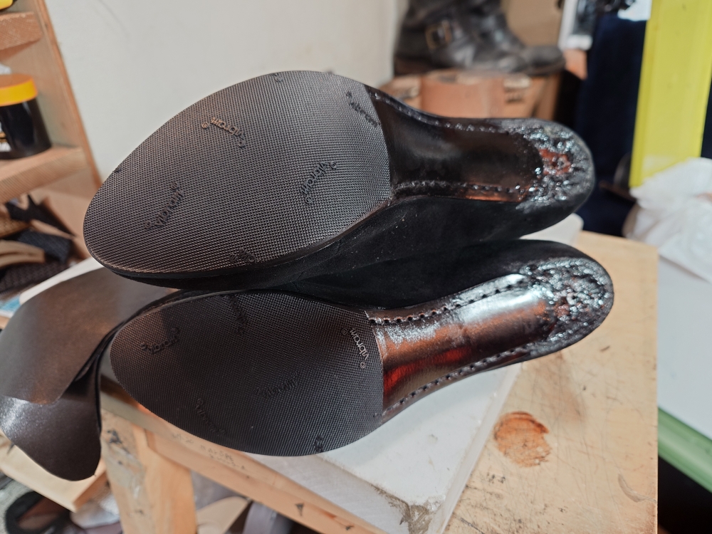 ハーフソールが貼られ、既に仕上げも済んでます♪