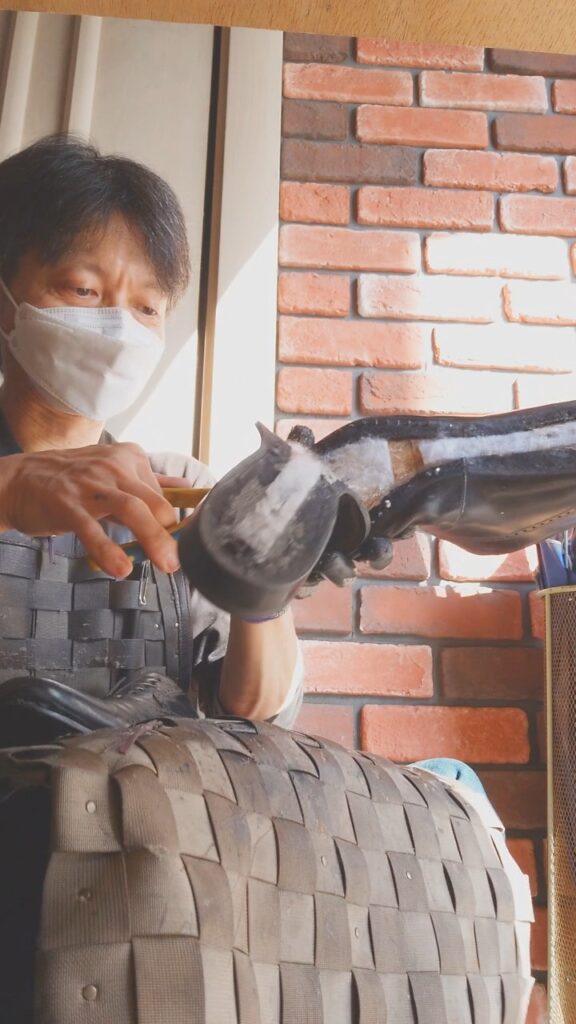 最近、よー真似してるポルトガルの靴修理屋さんの技です。