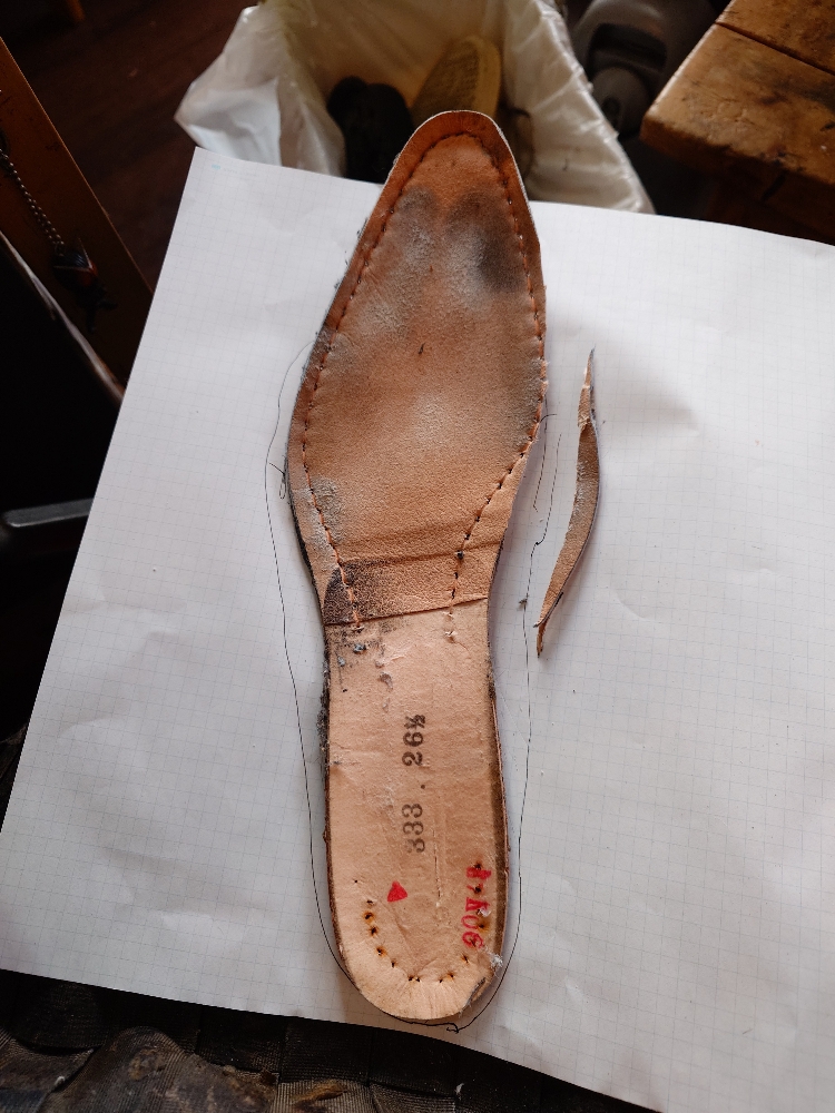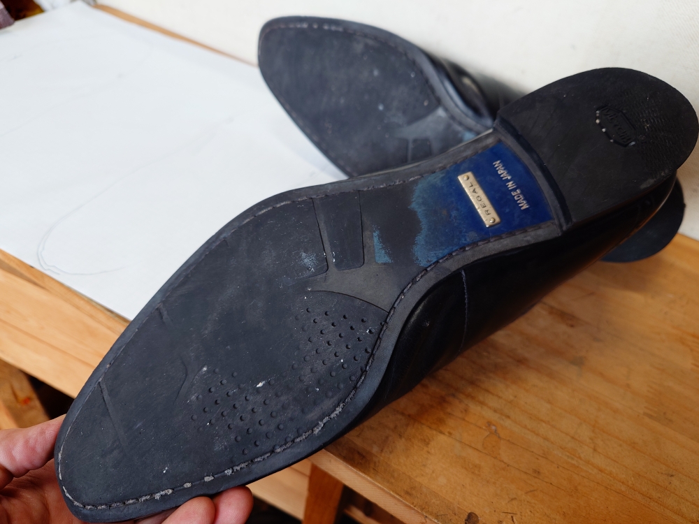 オールソール希望で来られたんですが、足を入れてみてもらうとかなり惜しい中底の余り具合。