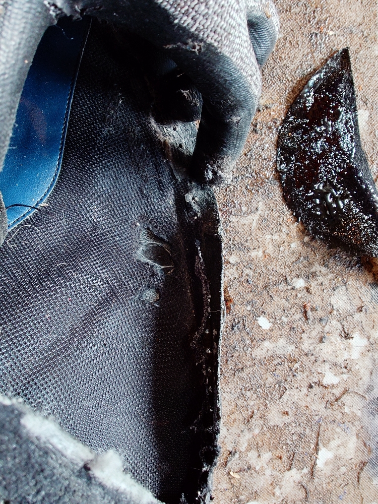 最近は接着剤が良くなったとは言え、半分しか縫うてないのは気に入らん😩