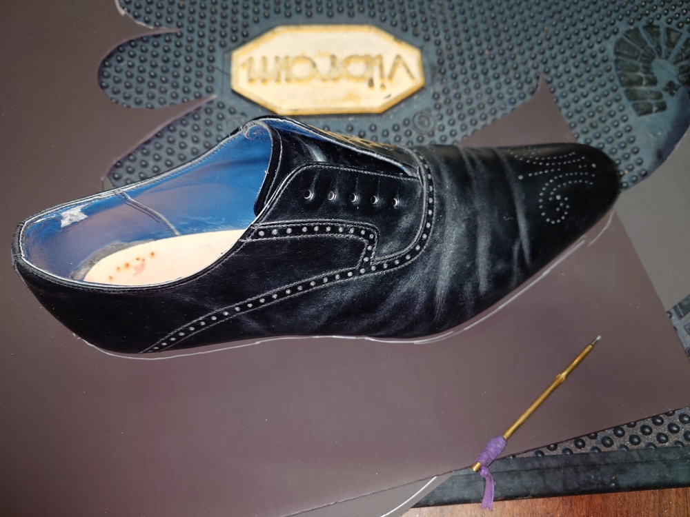 しかし、何と補強として中底に巻いた豚革の革一枚分の窮屈さがあるとの事で・・・😅