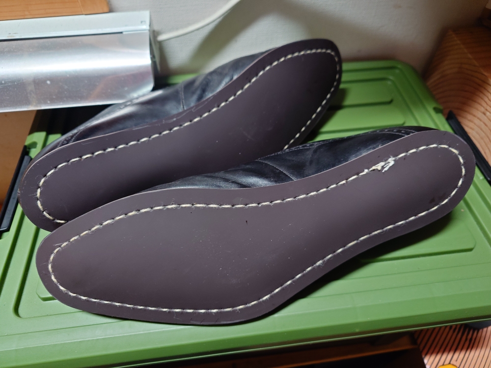 最近は接着剤が良くなったとは言え、半分しか縫うてないのは気に入らん😩